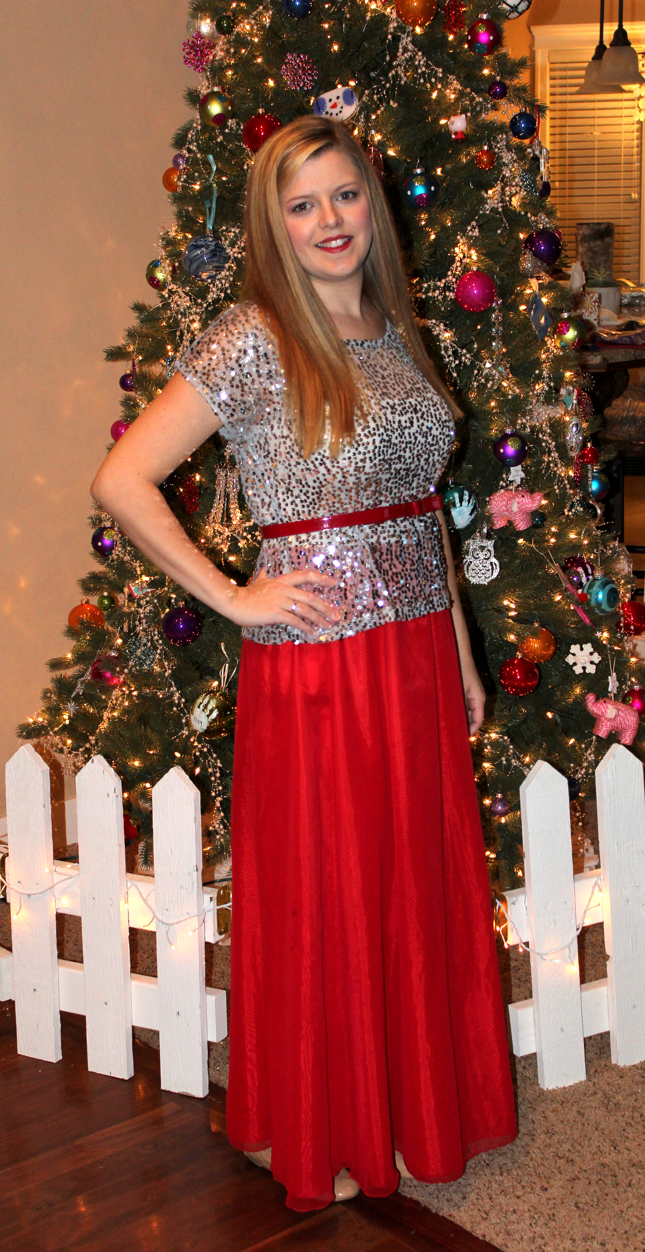 Here is an outfit that was from Christmas time. Red skirt was found at a thrift store and silver sequin shirt was purchased on groopdealz.com