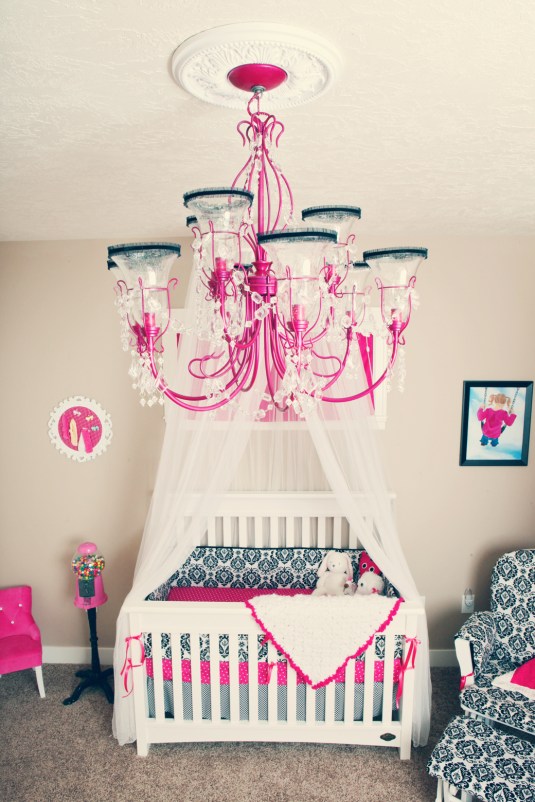Ok so I started a chandelier for Haddie’s room from the thrift store, I got it sanded, primed, painted and started hanging the crystals on it….now my mom found another chandelier that we all seem to like better. The first one seems so small now, I like all the detail the new one has and should be more easy to hang the crystals the way I wanted. Still a good deal at $35.00!!!!! So here is the before picture and I hope to have the after pictures up in the next couple of weeks, for the baby shower, fingers crossed!