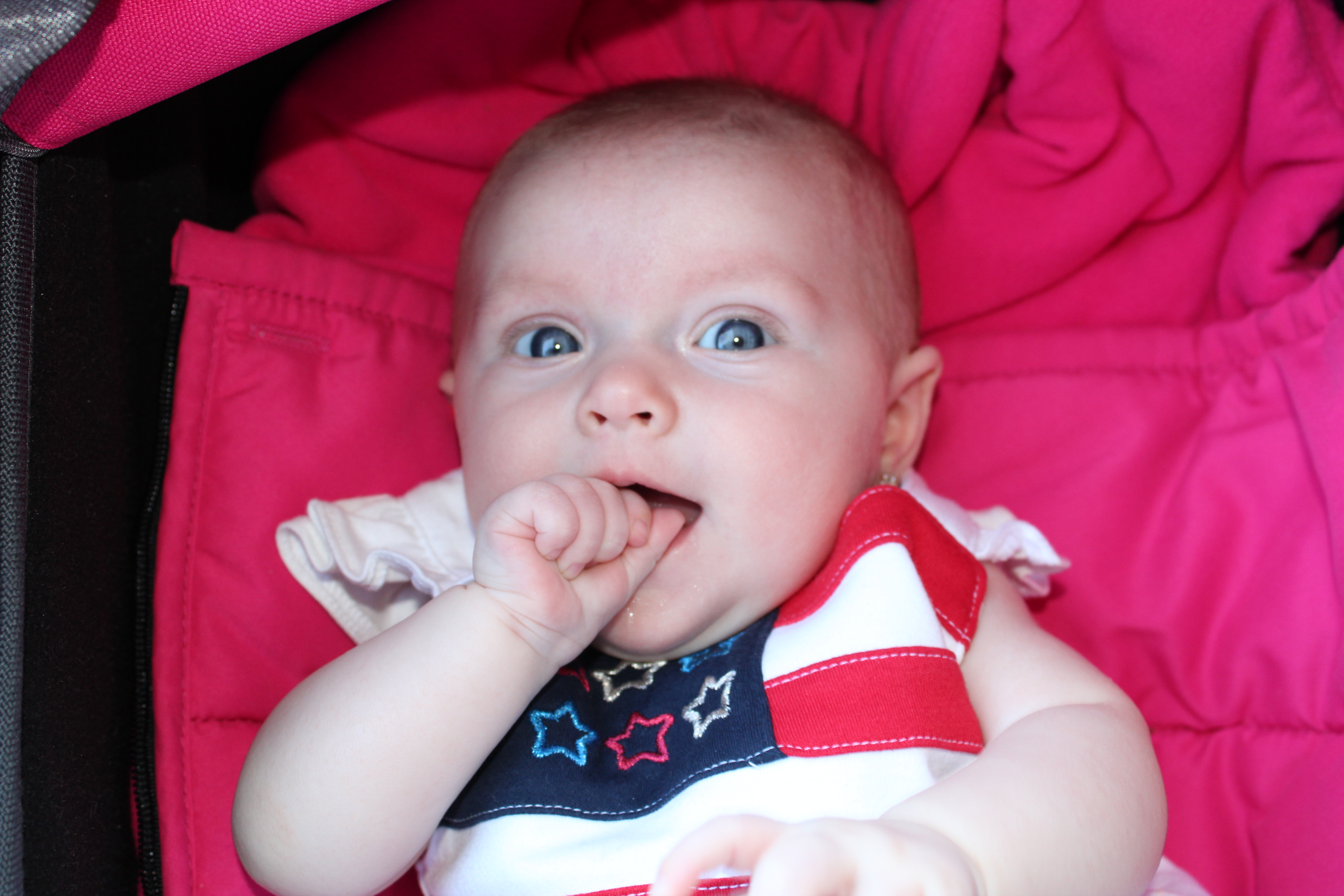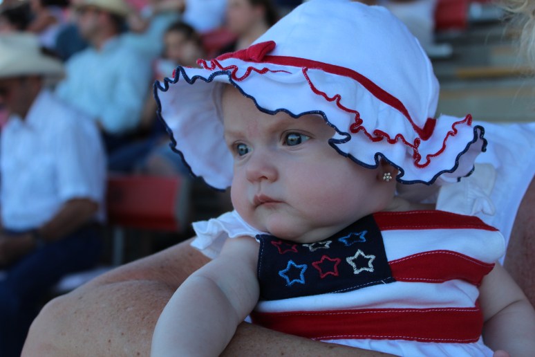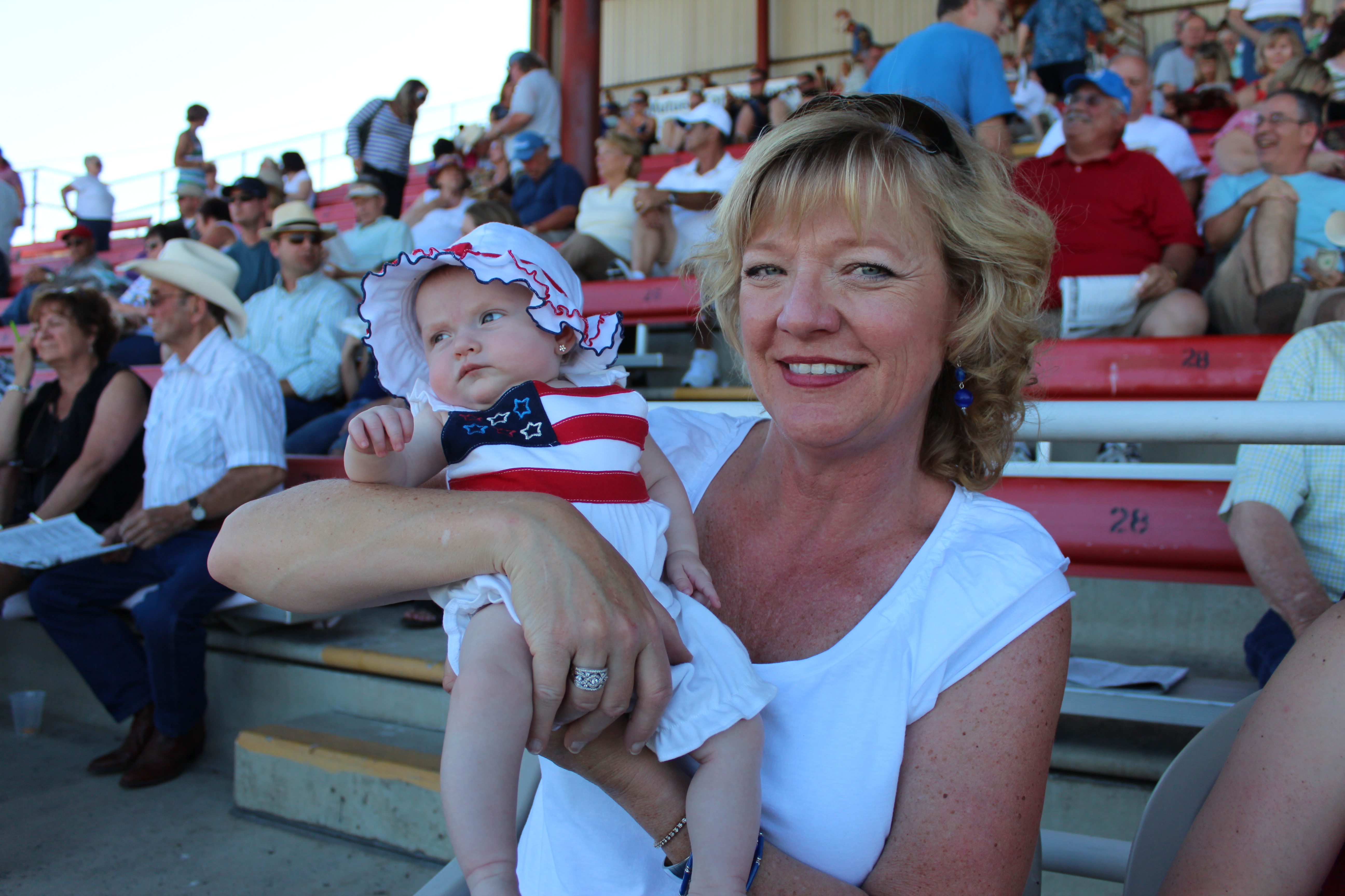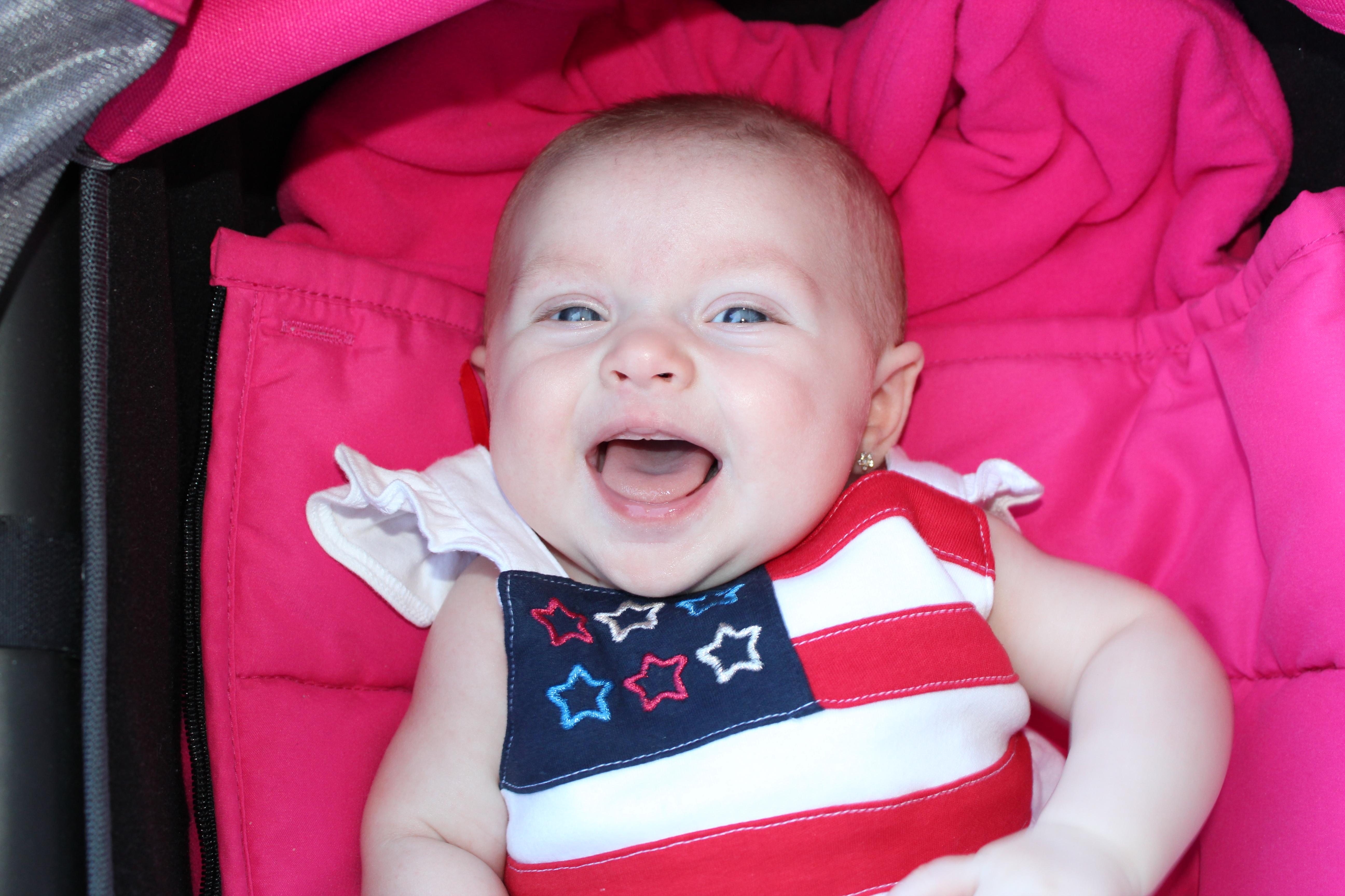 Haddie’s first 4th of July!!! Well this year will be full of firsts, but it is just fun to say. Haddie and I went to the horse races with my parents for the 4th, then we went home and watched the fireworks on TV with daddy because we were affraid that they would be too loud for her, plus Buddy was home and we couldn’t leave him out. So we sat as a family on the couch and watched, ahhh cute. Here are some pictures of Haddie in her second 4th of July outfit.
