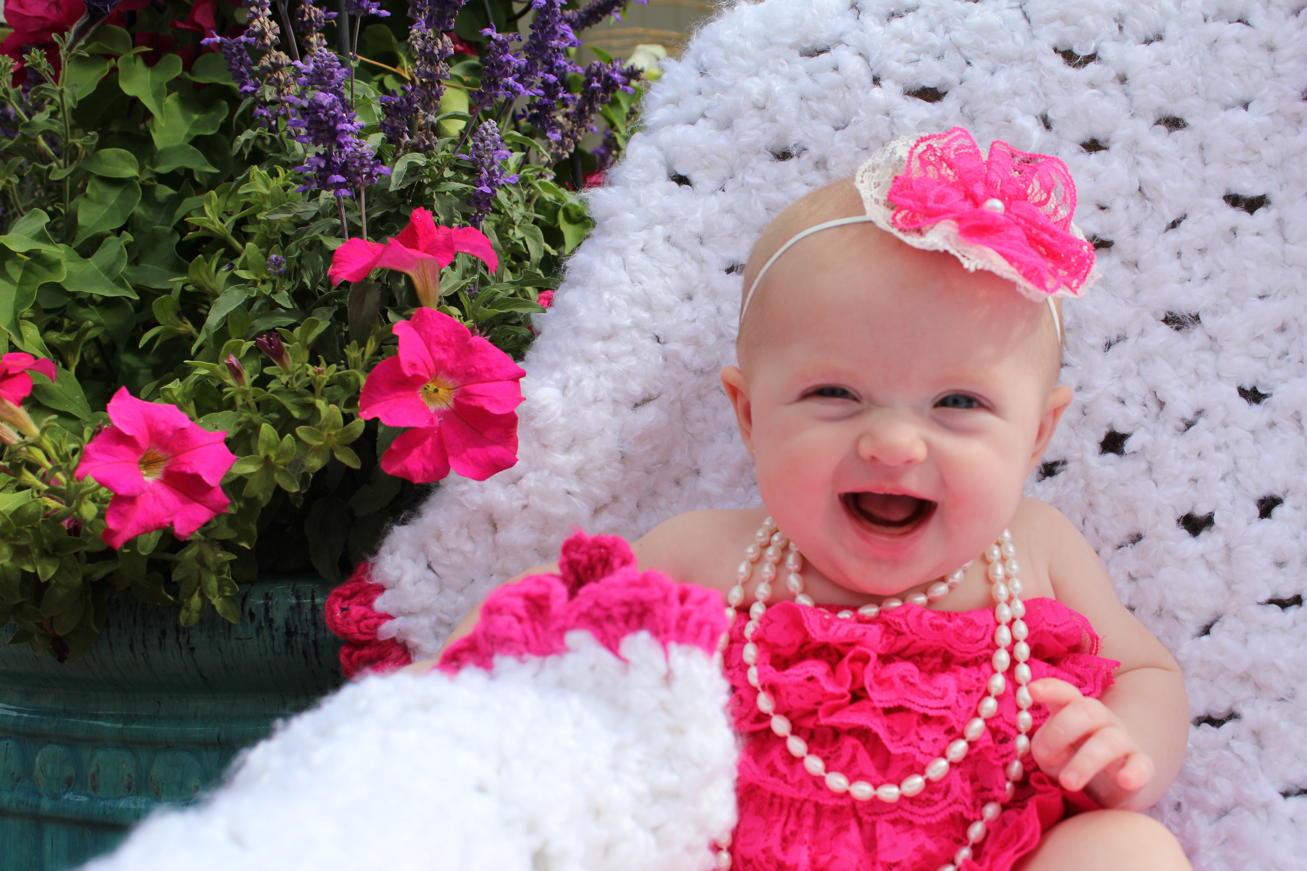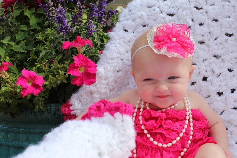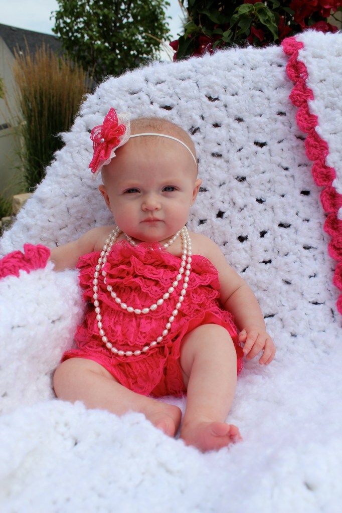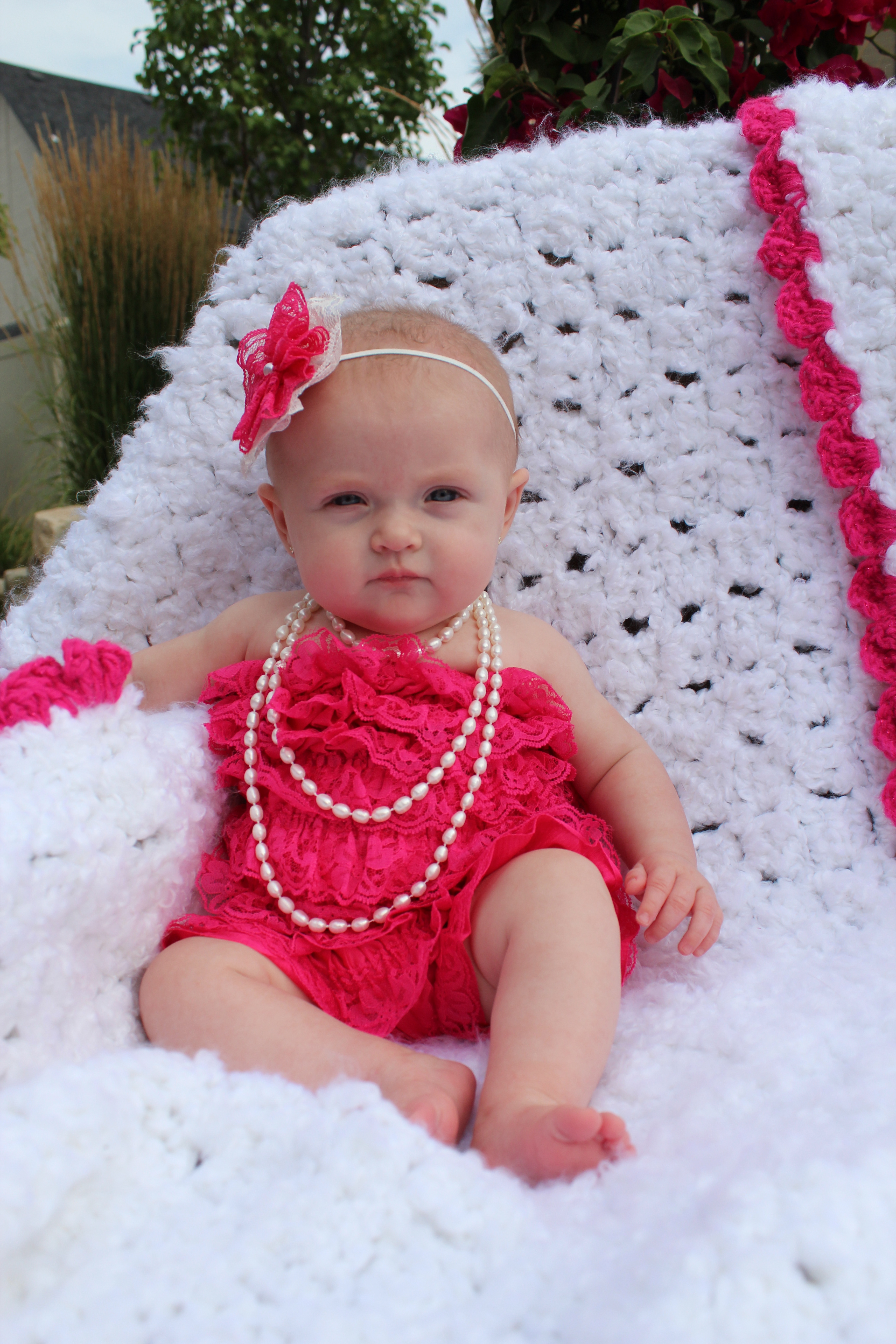 Got this little lace romper for Haddie’s 4 month photoshoot but couldn’t help myself it was tooo cute to wait. More to come, professional photos, from Ampersand Studios.