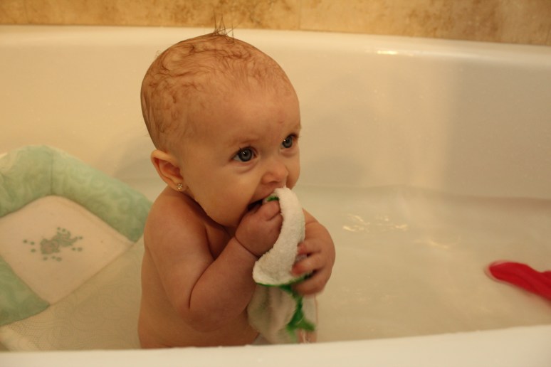 Haddie is really starting to be more exciting in the bathtub. She loves to kick and splash, play with toys, and the dang washcloth. Here are some cute pictures of her in the bath as well as a few pictures of her first little tooth.