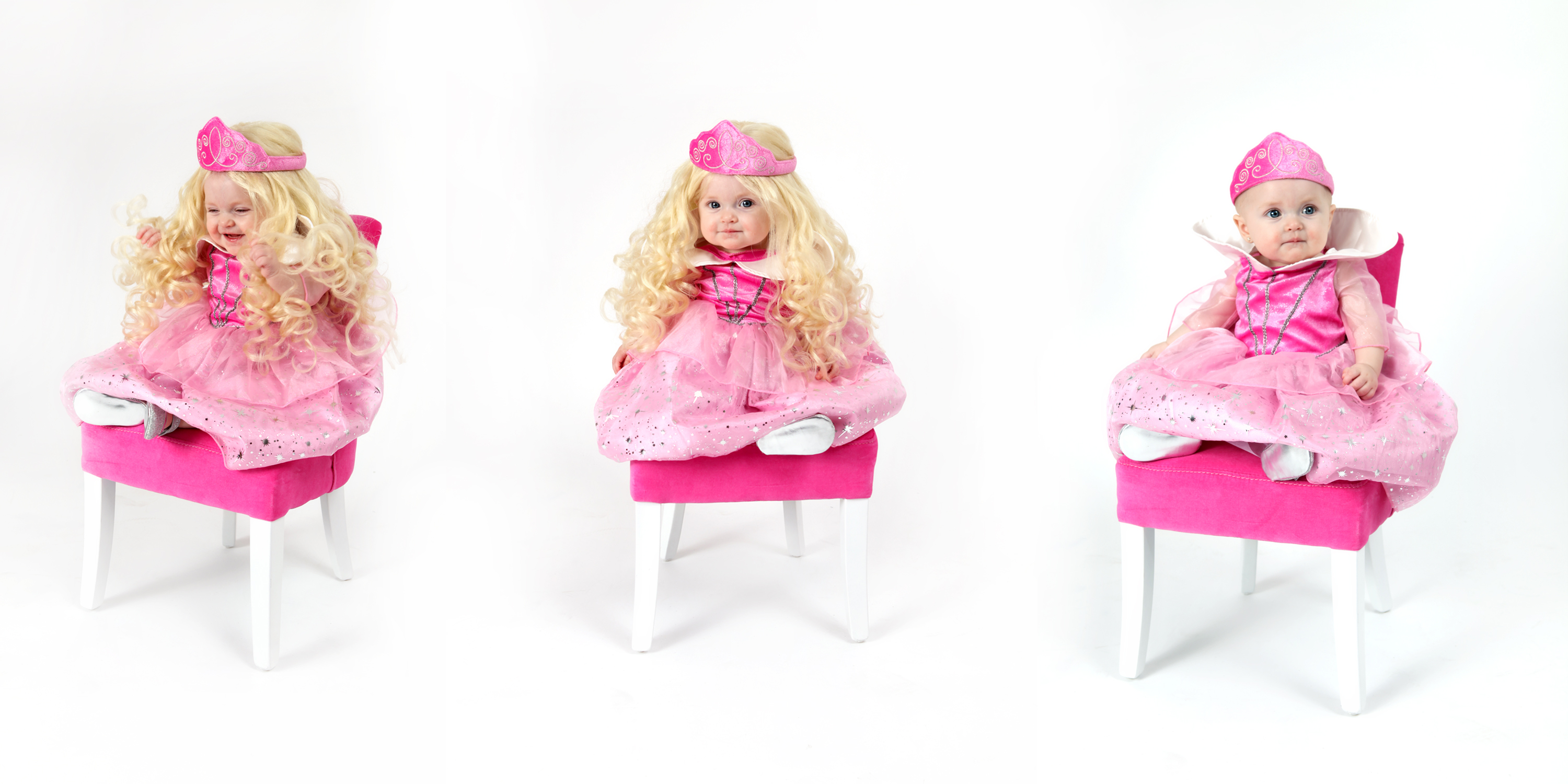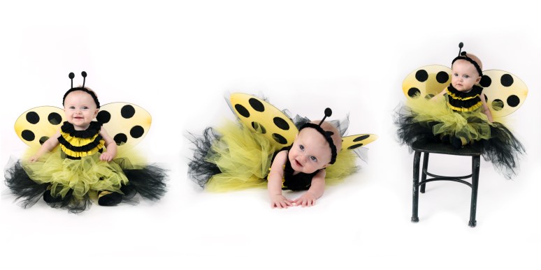 I planned to make Haddie’s first Halloween costume, a bumble bee, but was worried about the time I didn’t have to get it finished. October was a busy month for us. Brett’s Birthday, Halloween, School…craziness!!! When we were in California for my cousin’s wedding my mom saw the little sleeping beauty costume and we couldn’t resist, so this became the backup costume if I didn’t get the bee costume finished in time. Well I got it done, not as detailed as I originally wanted, but it got done, and it was too cute. So we couldn’t just take pictures in one costume, thanks Frannie at Ampersand Studios for putting up with me and my 2 costumes for pictures. And Sleeping Beauty cannot be bald, she has to have her long lushes locks of blonde hair so we found a kids wig for Haddie to wear, she loved it!! Enjoy!!