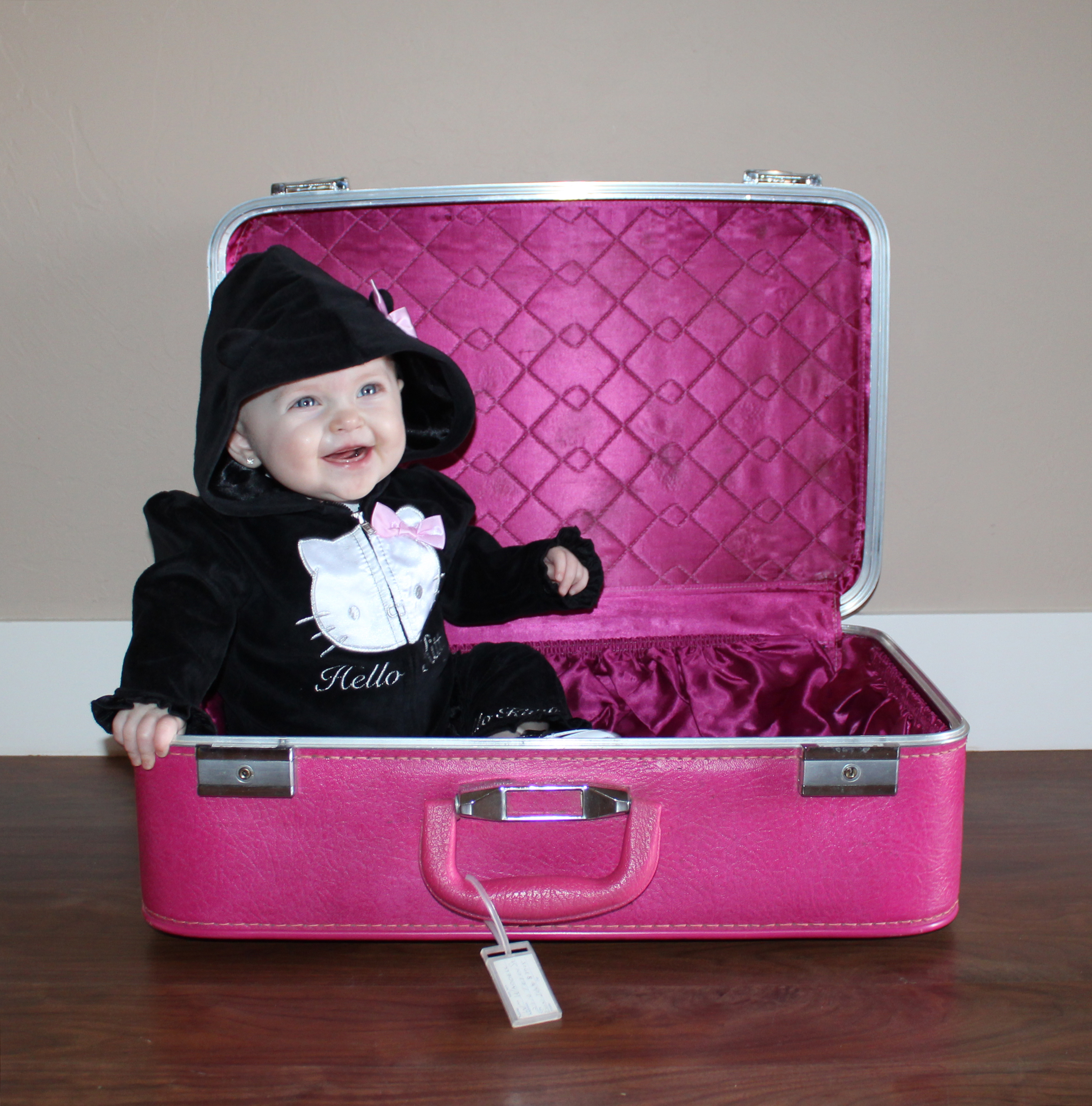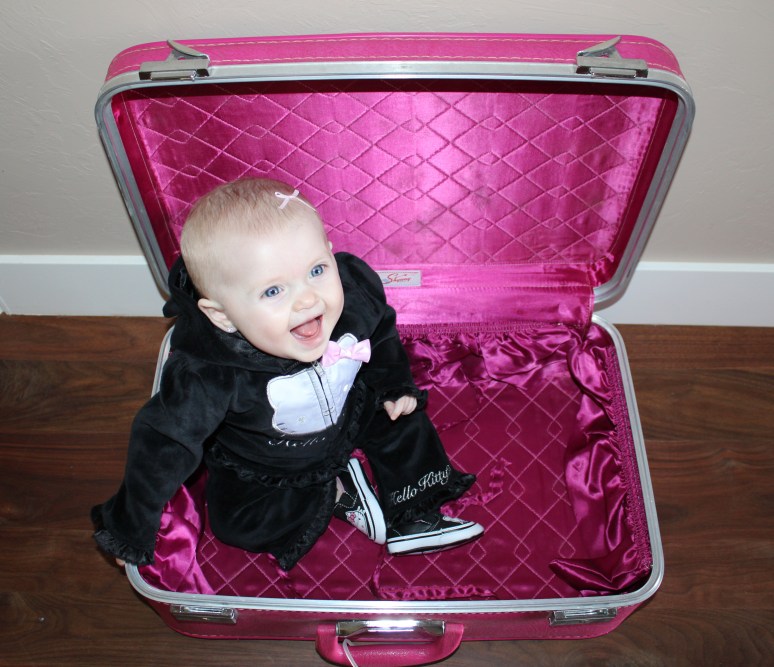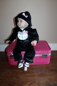 Haddie is now into Hello Kitty, by default, and got this cute jogging suit and matching vans crib shoes from Grandma. We just had to get some pictures of her in it all together. Since these pictures she has acquired several Hello Kitty items…!!!
