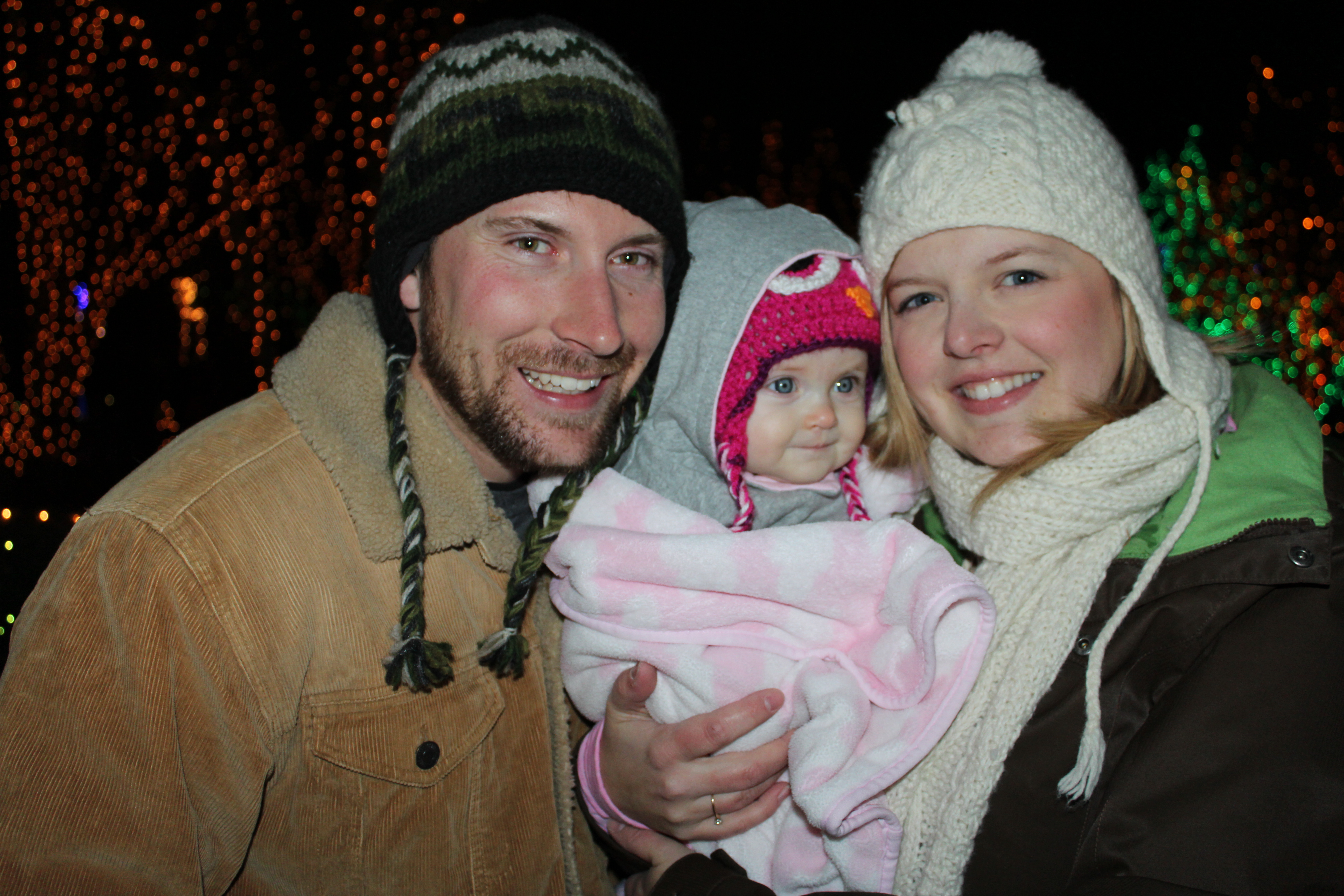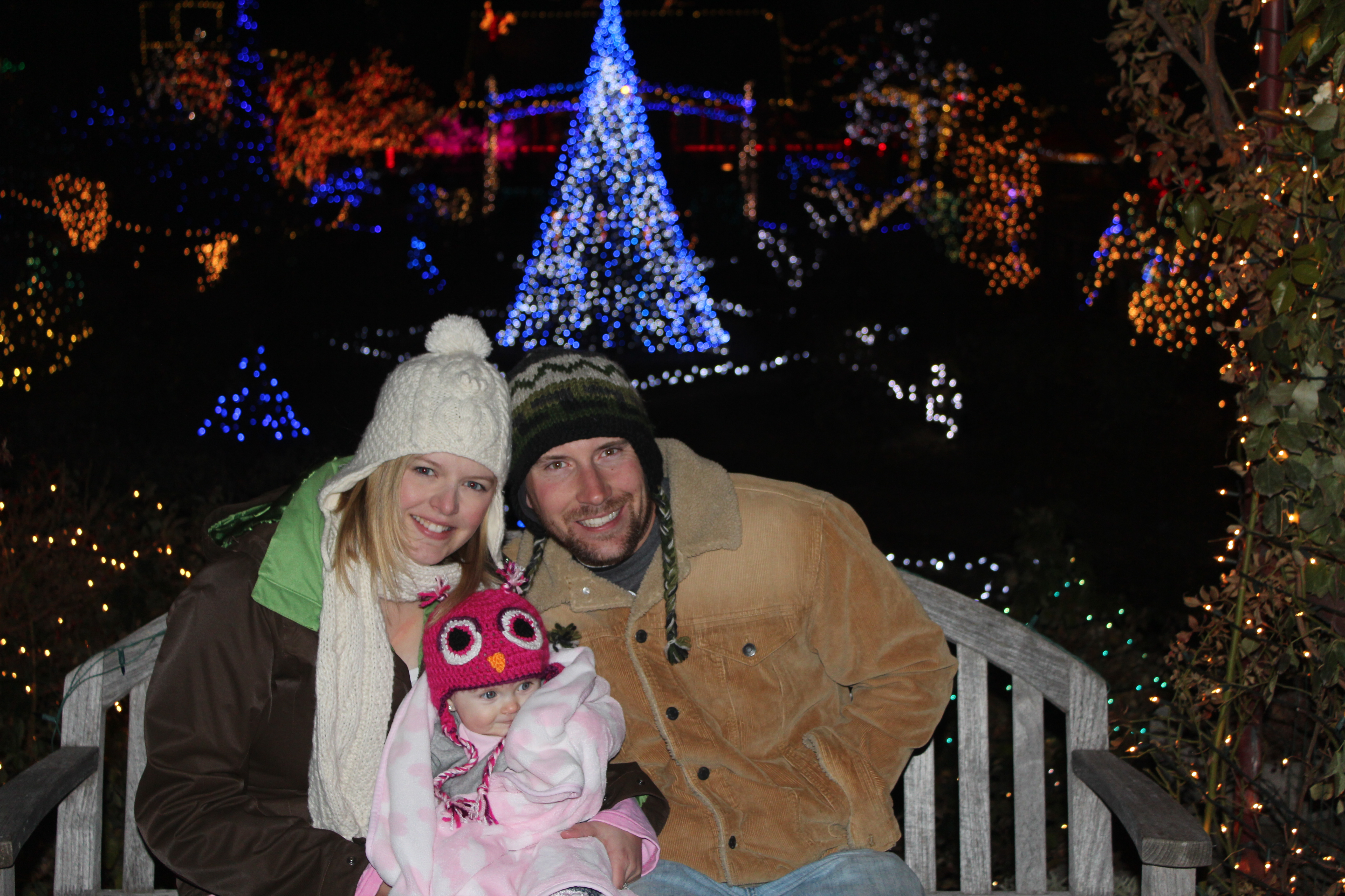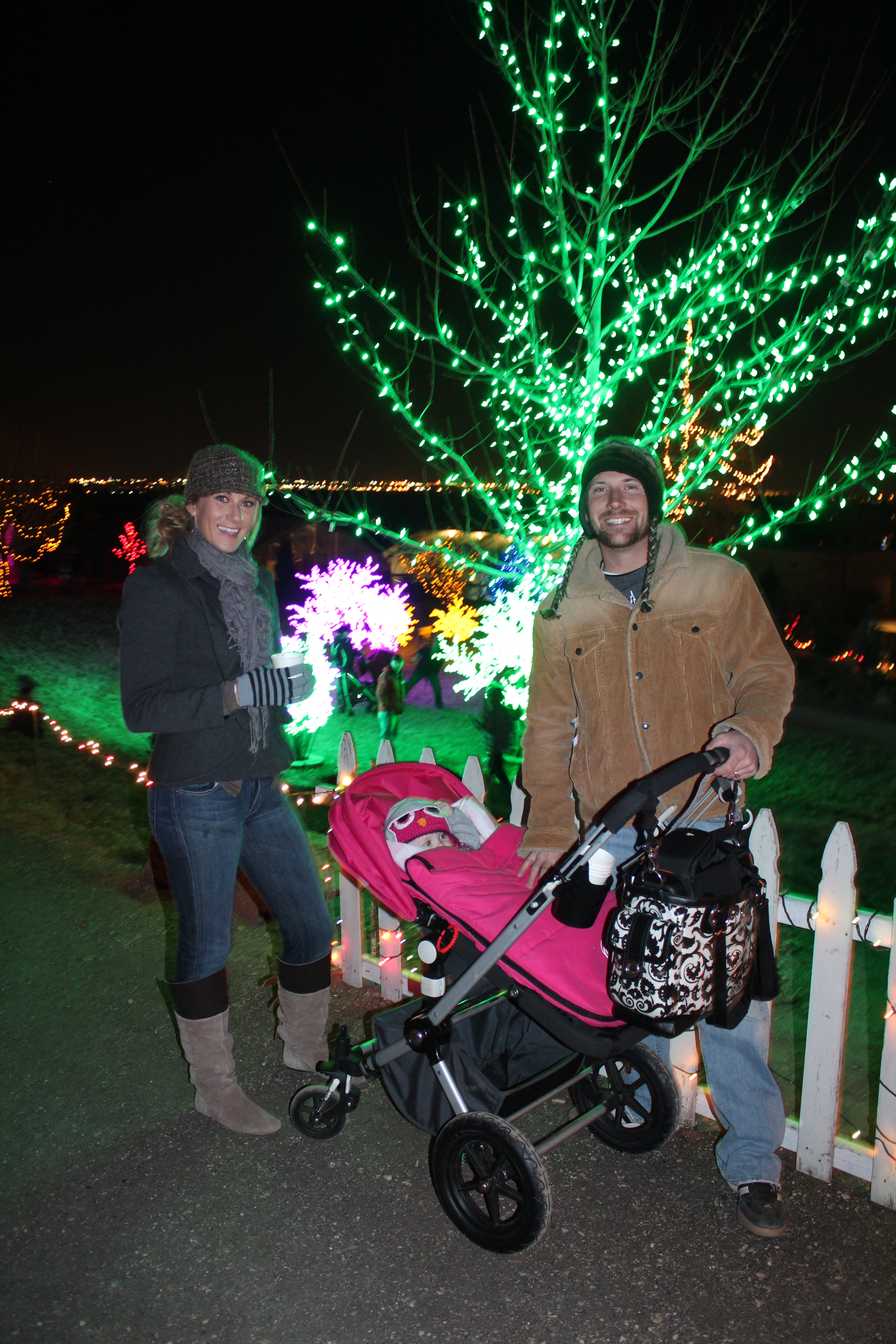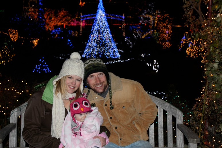 Took Haddie to the Winter A Glow at the Botanical Gardens. It was freezing cold, but so fun to do as a family for the first time. Haddie loved being all bundled up in her stroller looking at all the bright colorful lights. She even got to see Santa for the first time, so we thought (Grandma), she wasn’t too sure about him. Had almost a blank look on her face, no smiles, no tears, just content I guess. I had also taken a photography class that day with KRF Photography and Kristen invited us to tag along for a little extra photo lesson. All in all it was well worth the cold temperatures…just remember when you give your camera to someone else to take pictures of you to turn it back to automatic. (We had Brett’s sister, Lindsey, go with us and she got some of the cutest pictures of us but they were all blurry because she didn’t know she had to manually focus the camera…poo!!)