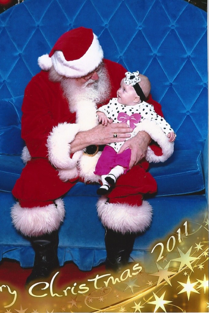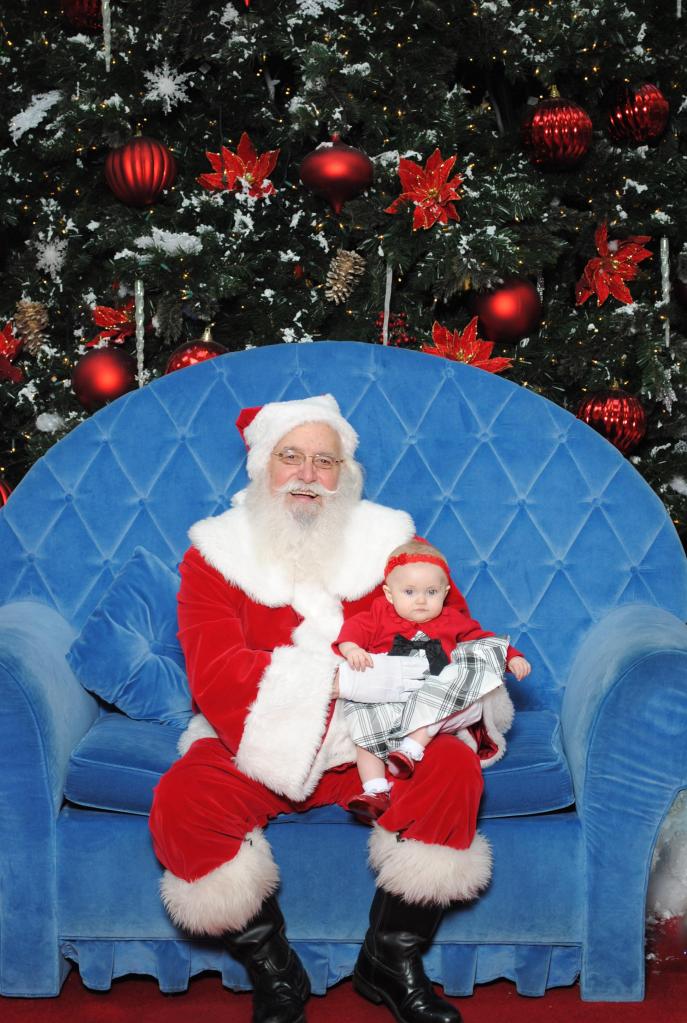 Here is the next time Haddie saw Santa, at the Mall. Like I said in an earlier post I thought this was the first time she saw him in the Mall, but Grandma took Haddie a while ago (before the Christmas rush…with no line!!) So here are the pictures of her and Santa at the Mall.