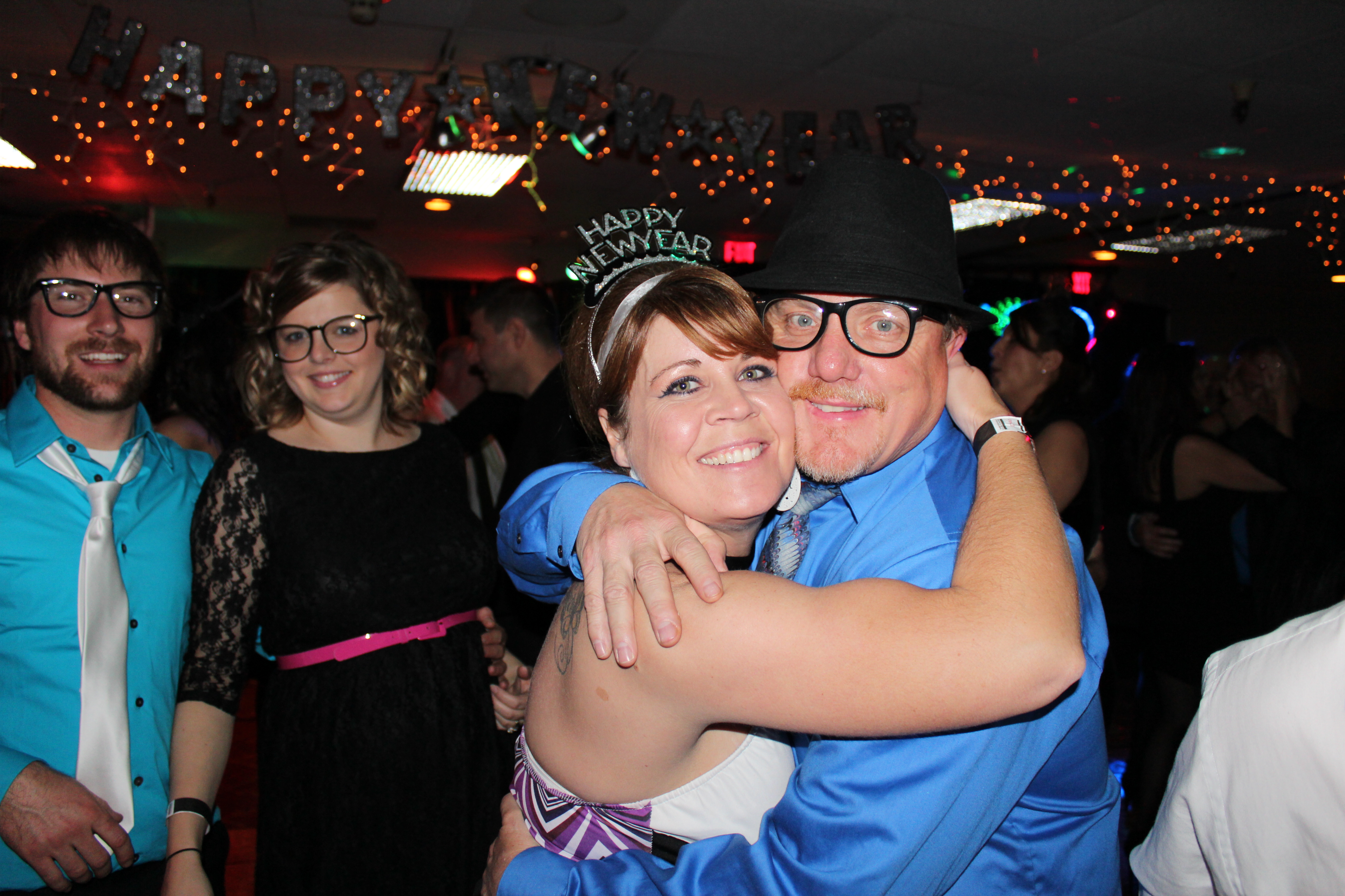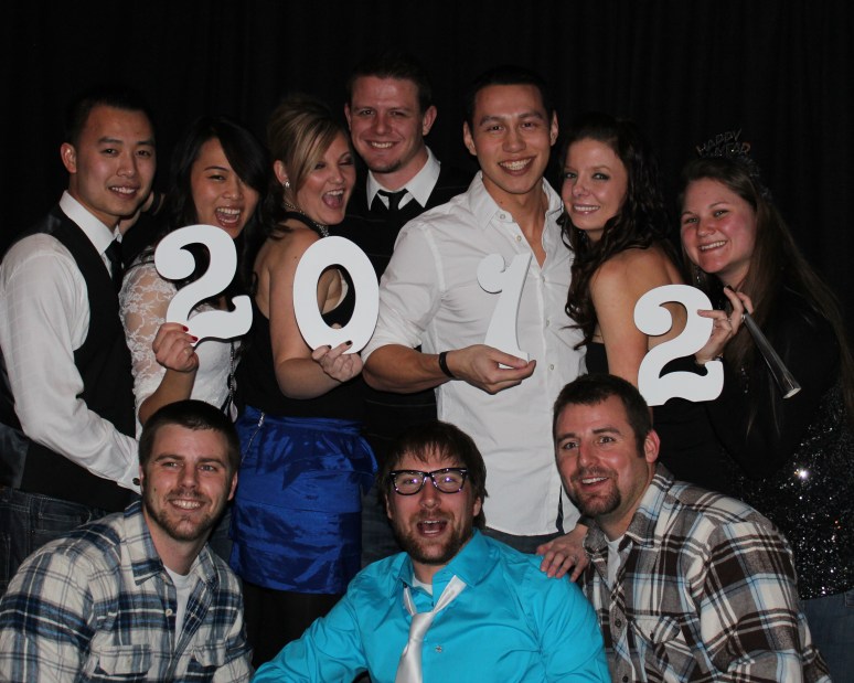 This picture needs explaining!  So the countdown began 10…9…8…Brett was missing.  Everyone was looking for Brett and asking me where he was…all I knew is that he went to the bathroom at around 1 minute till midnight.  Hmmmmm.  Well we got down to 4…3…2… I decided to take a picture of everyone because Brett was nowhere to be found and then, que hero music, there he was sprinting through the doorway towards us.  I got this picture just before 2…1…  Perfect timing!