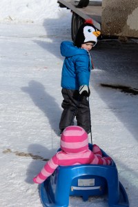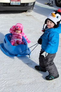 Carter pulled Haddie around in the sled for a good hour, if not longer, she loved it and I think he did too. He would pull her a little ways and look back making sure she was ok, too cute!!