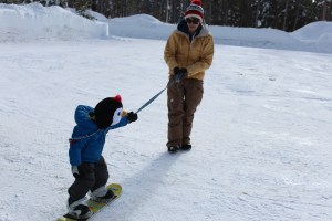 Carter snowboarding, at 3 years old, with his mom. He actually has really good balance and likes to snowboard. He kept saying that he wanted to go snowboarding in the mountains, which meant that he wanted to try again.