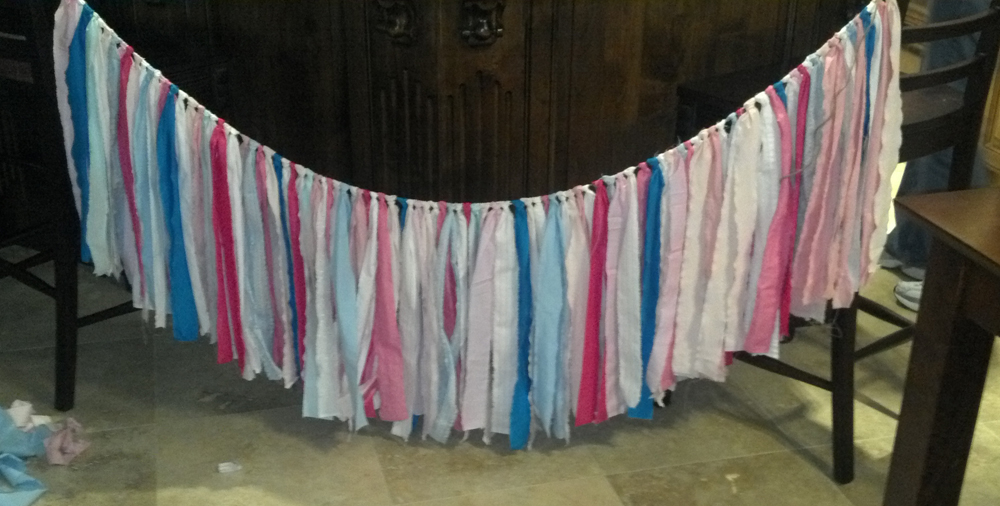 Fabric Banner: (dont have a before, but it was a collection of old fabric, sheets, scraps, even some fabric from my moms flower girls from her wedding!!)
