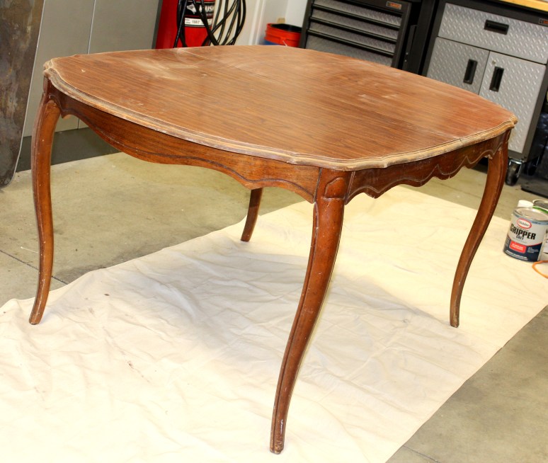 What we have here is a late night project brought on by Frannie. She needed a computer desk for her new houses’ home office so she went to a thrift store and found this table for around 50 dollars. She arrived at my house around 7:00pm one night wanting me to help her with the project, little did I know she wanted it done that night….she was so excited about it that she couldn’t wait. This is what we started with: