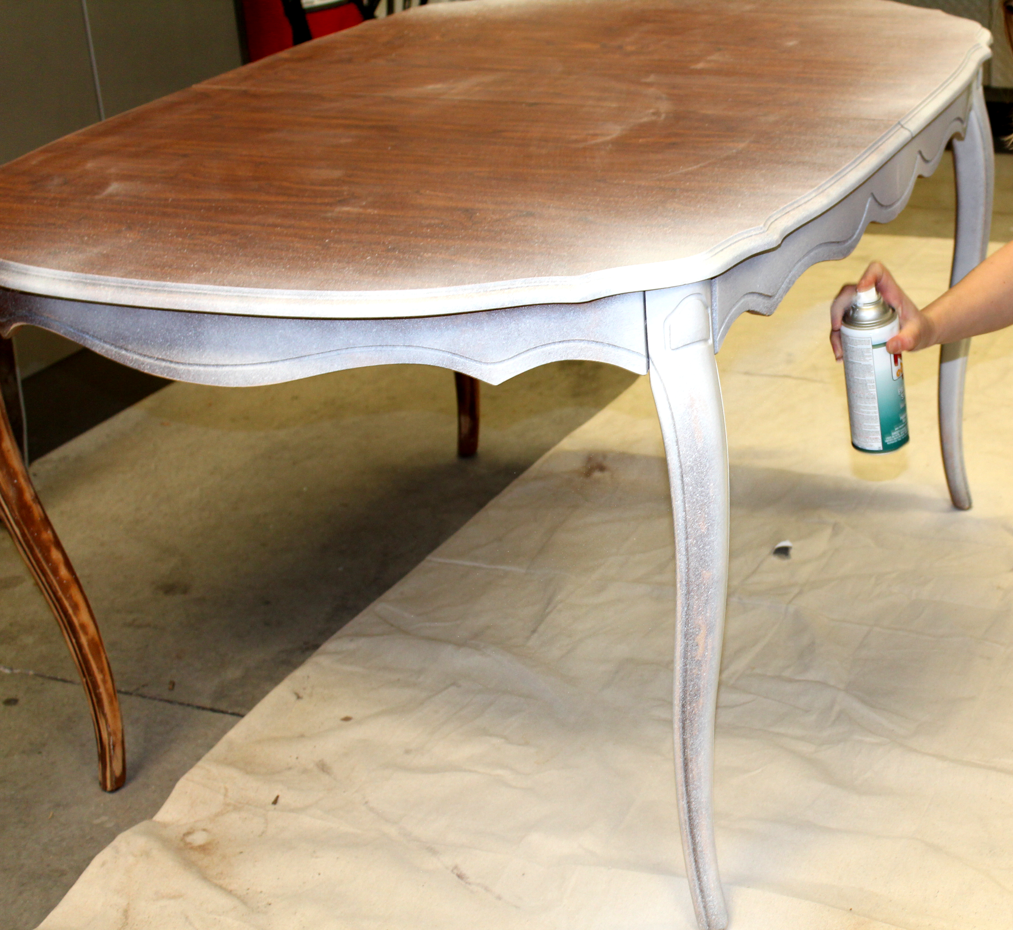 So we decided to leave the top alone for now until we got better sandpaper or another idea. We primed the legs with a spray primer: