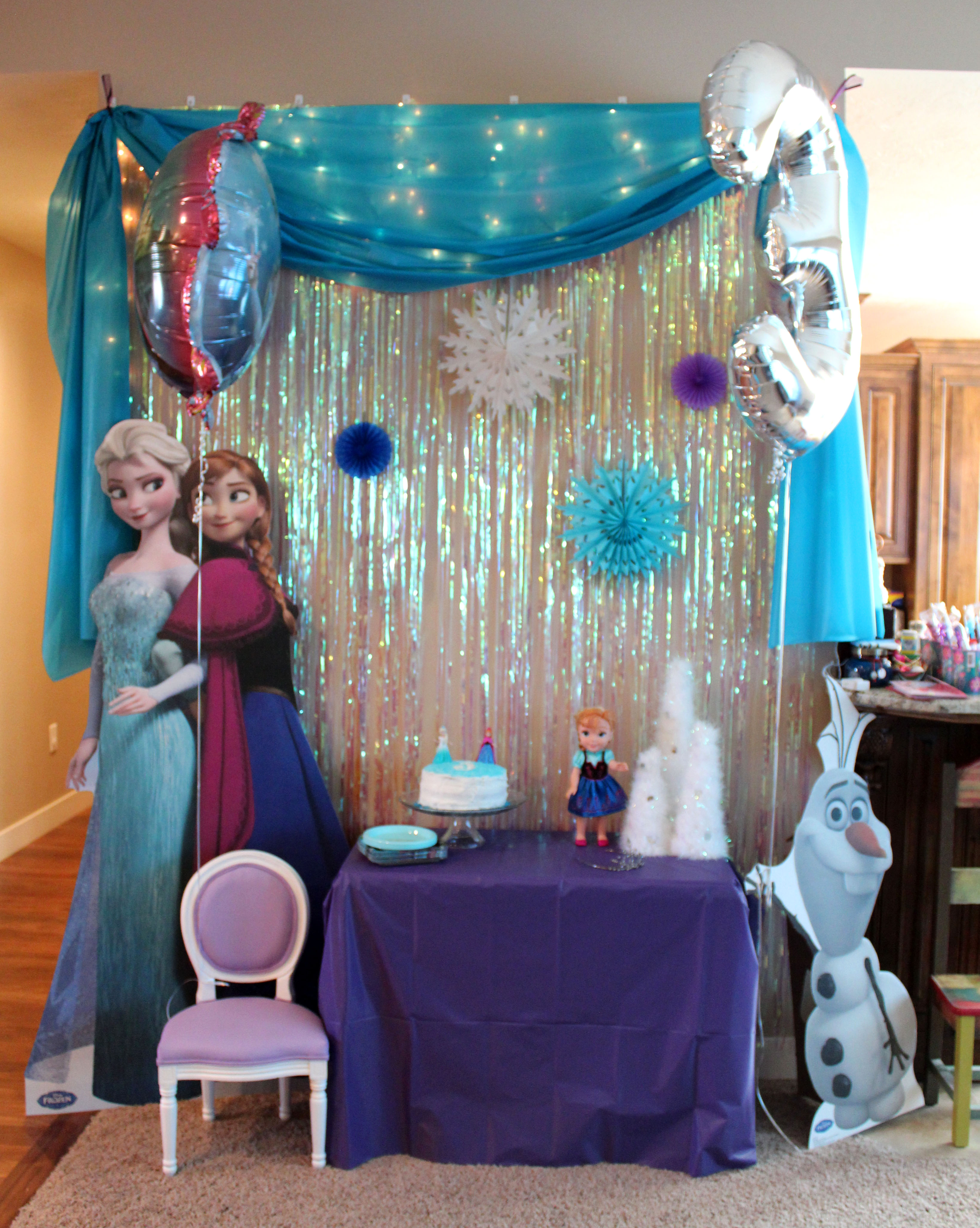 In March Haddie wanted a Frozen theme for her 3rd birthday party. And of course Frozen party items were HOT HOT HOT, and not in party stores yet (at least in Idaho). So I had to improvise and try to get as much as I could online hoping it was all going to turn out. Here is the result: