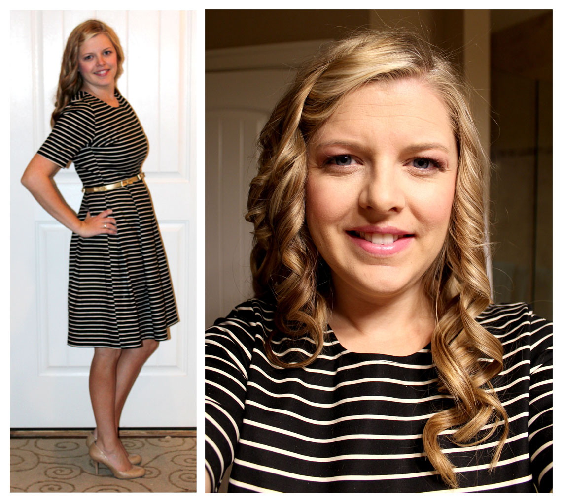 So I have found my new favorite dress!!! Its from Downeast Basics. The style and fit are awesome, and the quality is really good. I love that the neckline is good for a teacher, and larger chest, the length is just at the knee, sleeves are cute and not too tight for being longer. Also the dress has POCKETS!!!!! I paired it with a gold bow belt and actually got up early enough to curl my hair!